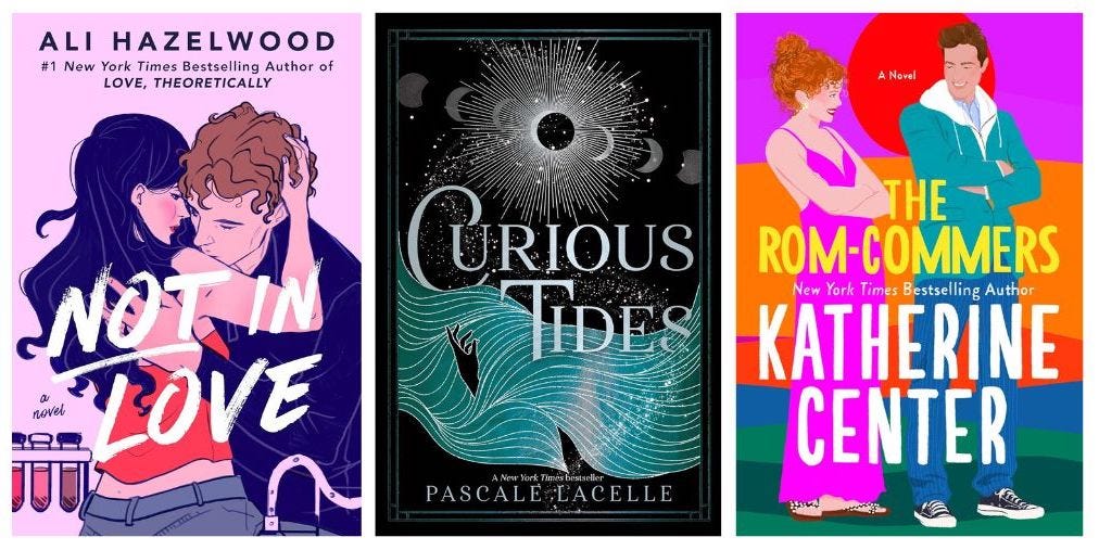 Curious Tides by Pascale Lacelle: I could write an entire newsletter about this stellar dark academia fantasy (with light romantic elements!) that follows two students at a prestigious magic university. Read the full synopsis here (because I don’t think I’ll do it justice in one sentence), but think a college-aged Harry Potter mixed with Leigh Bardugo’s Ninth House. A cult-like secret society; a powerful, lunar-based magic system; mysterious deaths; portals, dark holes, and parallel universes—the world building is completely immersive and bewitching. I’m so looking forward to the next book in the trilogy, releasing in November.